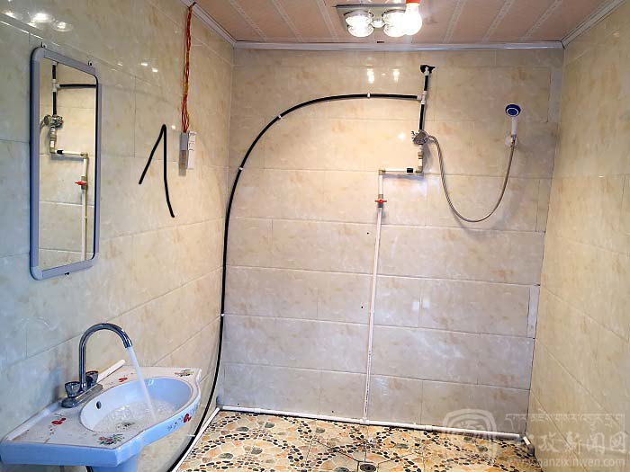 12月4日,理塘县甲洼镇下依村村民扎西用新安装的太阳能热水器,舒舒服服洗了一个澡。像他家一样,全镇近半村民用上太阳能热水器。