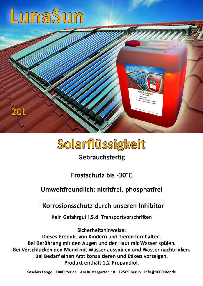 Umweltfreundliches Langzeit-Frostschutzmittel mit Korrosionsschutz für thermische Solaranlagen(Für Flach – und Vakuumrohrenkollektore) Frostschutz bis -28℃