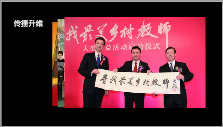 “阳光打在你们脸上,温暖留在我们心底”,在寻找最美乡村教师的颁奖现场,他接受爱心大使李修平、濮存昕现场采访时动情发言。“老吾老以及人之老,幼吾幼以及人之幼。”他像郭靖一样地表达着太阳雨品牌的温暖属性。