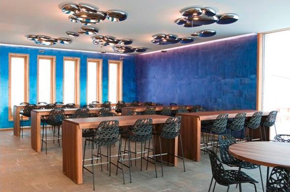 建立在海拔8000英尺的高山上(约2438米)。Muottas Muragl这个地方是唯一可以让直升飞机和有轨电车按时间来回在酒店和山下村庄之间穿梭的地方。酒店专注于质量而不是数量,这个酒店提供16套独特的住房-每个建材都来自本地的瑞士山石,松木和胡桃木。这次的重塑,考虑到包括材料的长久的耐性,虽然将材料毫无保留的暴露出来,或许也是一种自然的表现手法。这个酒店也提供了大量的餐厅和令人惊叹的观景台来供有人欣赏阿尔卑斯山全景。