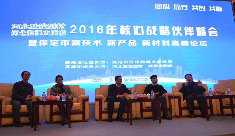 1月8日,河北胜达型材、胜强太阳能2016年核心战略伙伴峰会暨保定市建筑节能新技术新产品新材料高峰论坛在保定市隆重召开。会议由保定市住房和城乡建设局主办,河北胜达型材、胜强太阳能承办。保定市住建局、中国建筑金属结构协会塑料门窗委员会、中国农村能源行业协会太阳能热利用专业委员会、国际金属太阳能产业联盟、保定市建筑设计院以及河北胜达型材、胜强太阳能等单位领导出席会议并进行了发言。他们与河北胜达型材、胜强太阳能的核心战略伙伴分享了行业最新政策、技术、市场等方面信息,为核心战略伙伴2016年市场开拓方面奠定了坚实基础。出席会议的胜达型材和胜强太阳能核心战略合作伙伴表示,此次会议内容丰富,专家和领导从地产行业到型材门窗、太阳能热水系统的政策、发展现状与趋势,进行了全方位分析。充分了解未来市场发展现状和趋势,加上胜达型材和胜强太阳能具有独特竞争力的产品,与会核心战略合作伙伴信心满满。