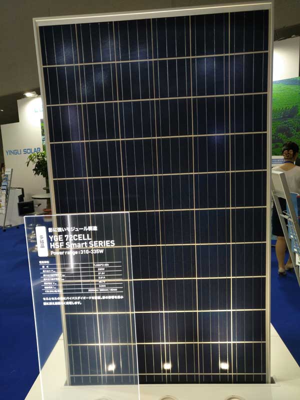 据现场工作人员介绍,英利的“熊猫”技术已经升级到第二代。高效N型单晶PERT电池、离子注入技术、五主栅设计,使得“熊猫”电池正面效率高达21.5%,背面效率也达到19.8%。采用二代“熊猫”电池生产的熊猫双面发电PANDA BIFACIAL 60片光伏组件,正面发电功率可达300瓦,组件背面最高可贡献正面发电量的30%,实际发电功率超过380W。横出线分体式接线盒设计,杜绝背面遮挡,相比一代背部有遮挡组件,可提升4%以上的发电量。