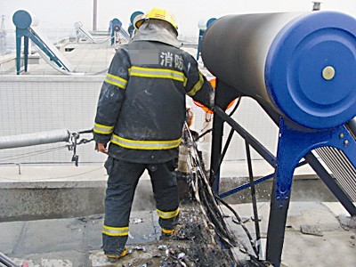 而南京肖先生家的太阳能热水器今夏却在楼顶神奇地“自燃”了,幸好被人及时发现才避免了一场大火。而着火原因是防冻带(电热带)连电起火。