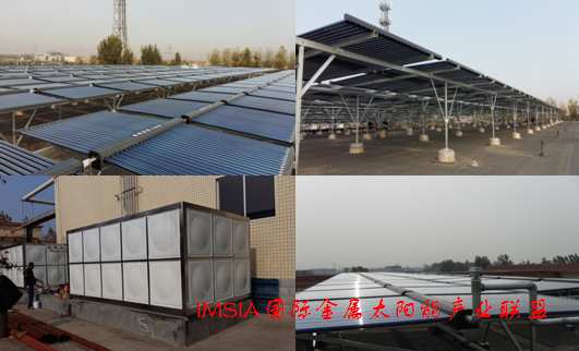 山东金号纺织工业园热水工程,采用三腔全玻璃真空管式集热器,共1250组,总计面积8583㎡,设计日用水量500吨,热水温度60℃。通过集热系统将冷水进行预热,循环系统将热水送至储热系统,为染整车间提供所需织染热水。